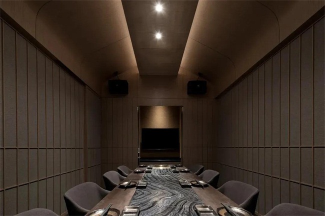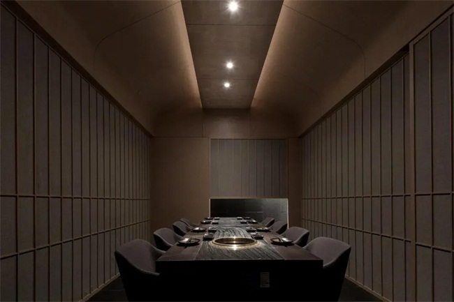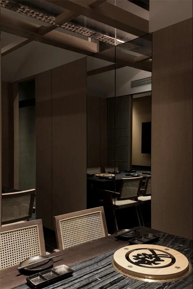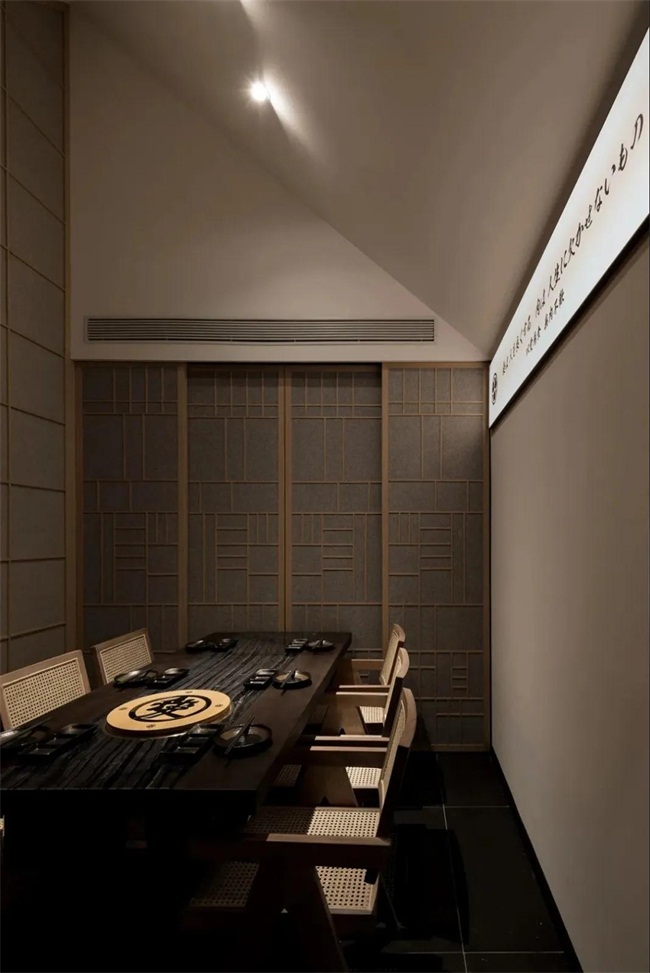 十人座位的日式包房,運用木質天花和紙拉門營造日式的用餐環境,使整個空間顯得寧靜而又溫馨。