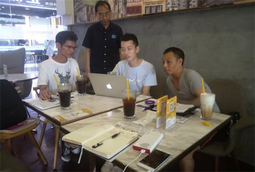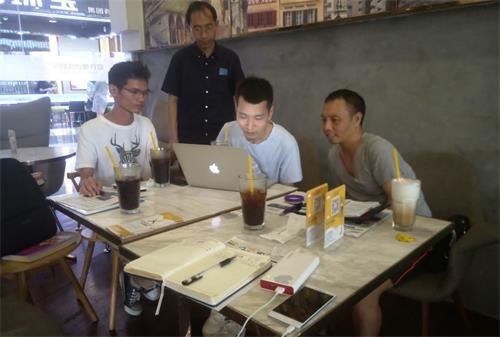 9月17日公司本是停電日,谷先生利用這個時間組織營銷推廣團隊的幾個小伙伴走出去到橫崗埃克斯咖啡廳臨時辦公,既在無電日解決了有電的事,這就是創新,是工作安排的創新,希望大家在這方面多一些創新。