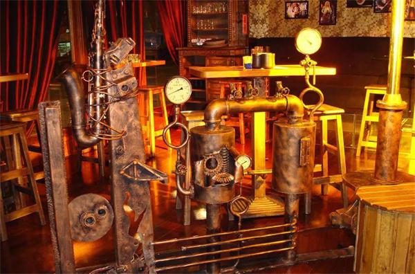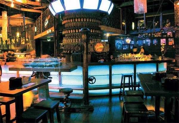 蘇荷酒吧的室內(nèi)設(shè)計以工業(yè)風(fēng)元素作為整個空間的主元素,用鋼鐵、齒輪、玻璃、舊原木等材料,來營造厚重粗狂、奔放自由的娛樂氛圍,同時,融合后工業(yè)時代的時尚輕松和維多和亞時代的繁華藝術(shù),讓進入酒吧的顧客對藝術(shù)、自由、華麗、時尚和頹廢的新感覺。