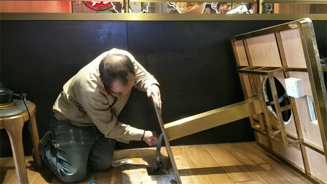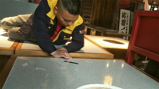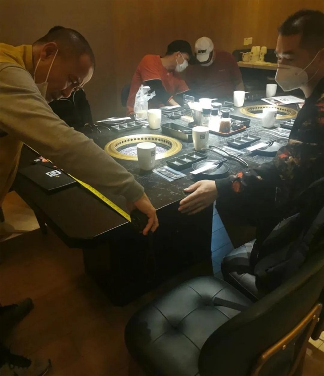 還有,我們木工部主管陳奇曉師傅,在安徽合肥的卡旺卡做安裝,連續2天晚上通宵工作,然后又趕到北京的玉林烤鴨餐廳做售后服務。由于是營業中的餐廳,陳奇曉師傅也只能在晚上工作。晚上通宵安裝家具,對我們海德利人來說,已習以為常。為了不影響客戶餐廳的白天營業,我們海德利人只能白天在工廠上班,晚上又得跑到客戶餐廳工作。