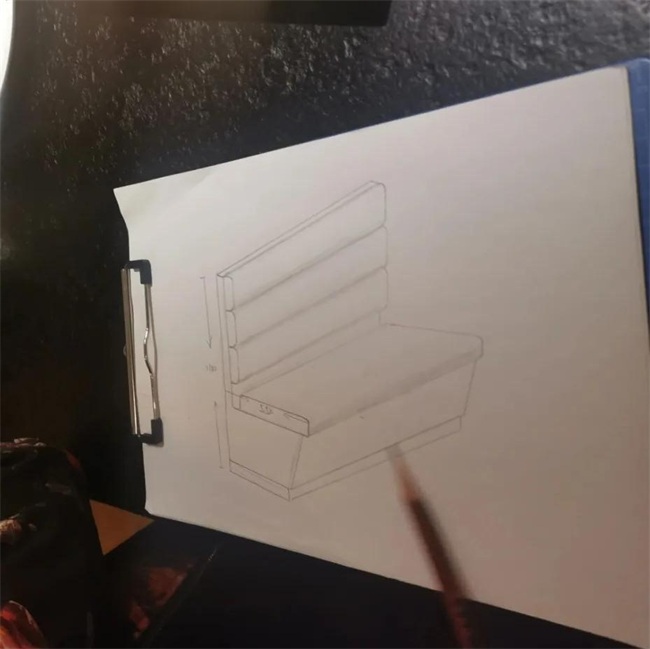 圖:吃飯時與客戶研究家具工藝時畫的手繪圖