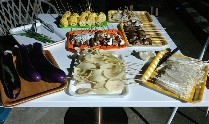 圖:小伙伴洗干凈并串起來燒烤的蔬菜
