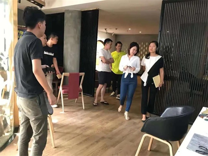 當我們團隊到了大誠當道設計公司,除了迎接我們的小伙伴,其他人員都還未上班,與我們直接對接工作的小伙伴還很年輕,卻對每一件家具尺寸比例都提出了很多具體改進。我們一邊聽設計師提出的各種改進,一邊打量他,真被他的嚴謹工作態度折服了。