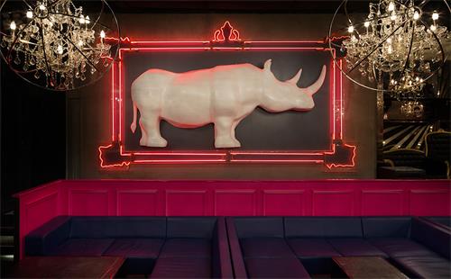 南寧復(fù)古的酒吧有著歐美的工業(yè)氣質(zhì),獨(dú)特的裝修風(fēng)格也成為酒店的招牌,吸引著人們的視線和關(guān)注。酒店內(nèi)部昏暗又迷離,打造出一種曖昧又放松的氛圍。在酒店中間擺放著一組組的桌椅作為人們的休息區(qū)域,茶幾為黑色的亮面材料,將酒店絢麗的燈光反射的十分清晰,周圍則是舒適又奢華的皮質(zhì)沙發(fā)。在酒店的天花板中間是大型的燈具,金屬的支架上安裝著整齊的發(fā)散式的圓形大紅色燈光,旁邊則是深藍(lán)色的線條燈具,組合成一個(gè)個(gè)噴泉式的吊燈,美麗又奪目。