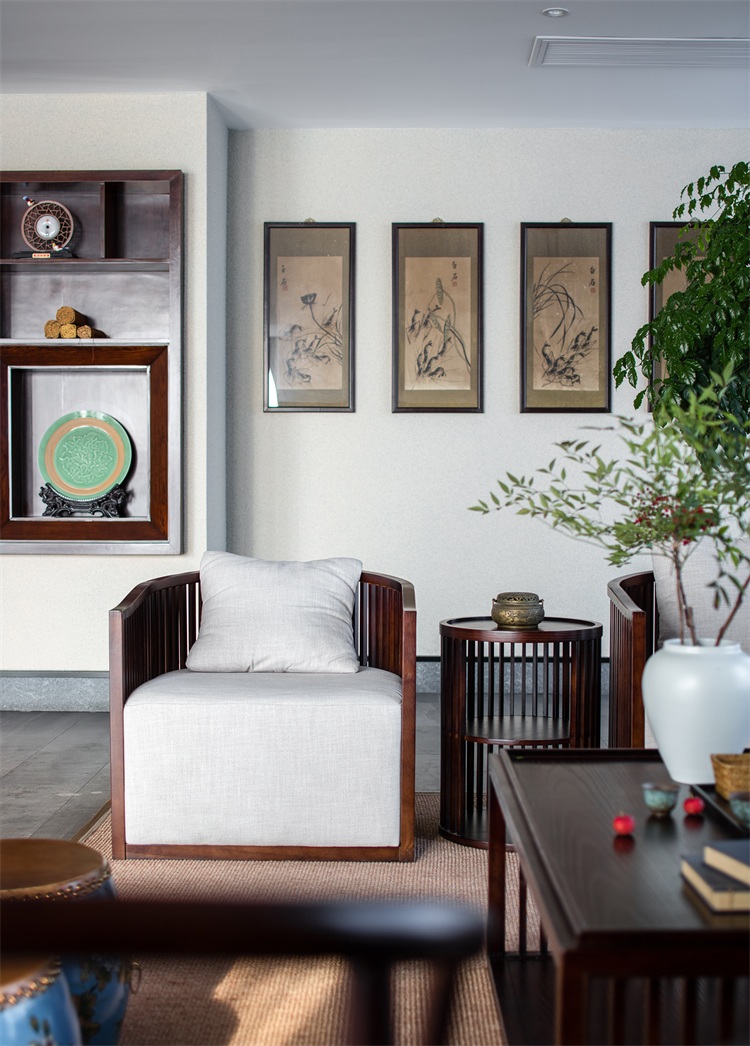 本案以現代的審美需求來打造富有中式韻味的空間,將設計注入了一股嶄新的東方風格,中國傳統美學的脈絡得以蔓延下去。設計師著力于構思和造詣,尋求自然與生活空間的呼應,沉淀浮躁的心性,出于自然,高于自然,讓空間多了一份含蓄之美。