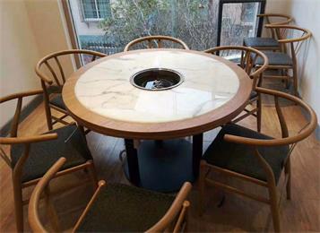鐵桶底座大理石臺面圓形電磁爐火鍋桌
