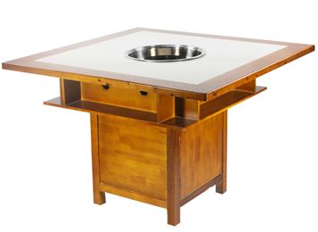 仿古田園風實木大理石柜式麻辣英雄火鍋桌