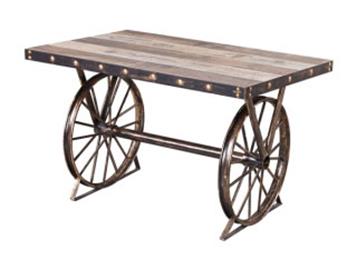 美式鄉(xiāng)村復(fù)古做舊實(shí)木鐵藝車輪長(zhǎng)桌
