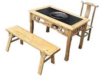 炭燒木火燒木仿古實木火鍋桌_電磁爐煤氣灶火鍋桌椅