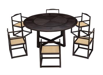 新中式實木水曲柳餐桌椅組合 主題餐廳圓桌