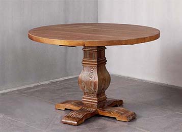 工業風桌面花紋貼片銅釘包邊餐桌藍色實木球形餐桌腳西餐桌